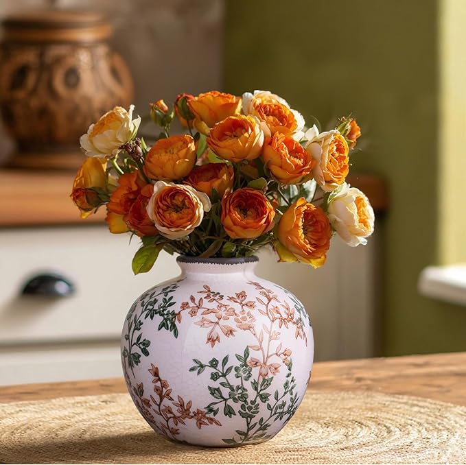 - Ceramic Craftsmanship, Both Texture and Details] Made of high-quality ceramic material fired at high temperature, the surface glaze is delicate and natural, with a warm texture, which not only retains the traditional flavor of antique vases, but also shows the freshness of modern aesthetics. The details are well handled, it is a farmhouse vase with a sense of rusticity and sophistication.