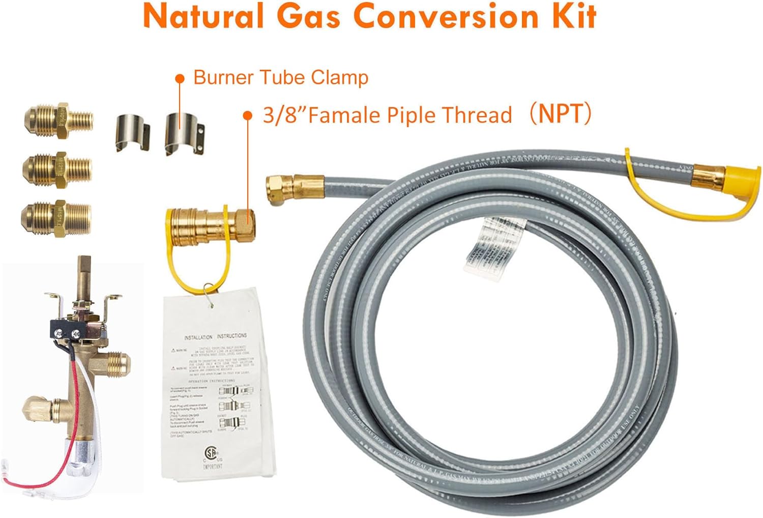 - Natural Gas Conversion Kit - Includes a natural gas converstion kit, which will be shipped separately. Converts propane fire pit tables to natural gas. We shipped the package in two separate boxes, It is possible that one package will arrive before the other.