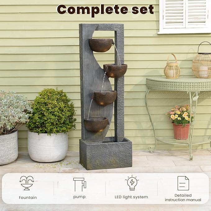 - 🌊 5-Tier Cascading Waterfall Design: Experience serene ambiance with this outdoor waterfall fountain featuring five gently cascading tiers, mimicking natural stone textures for an elegant garden fountain centerpiece.