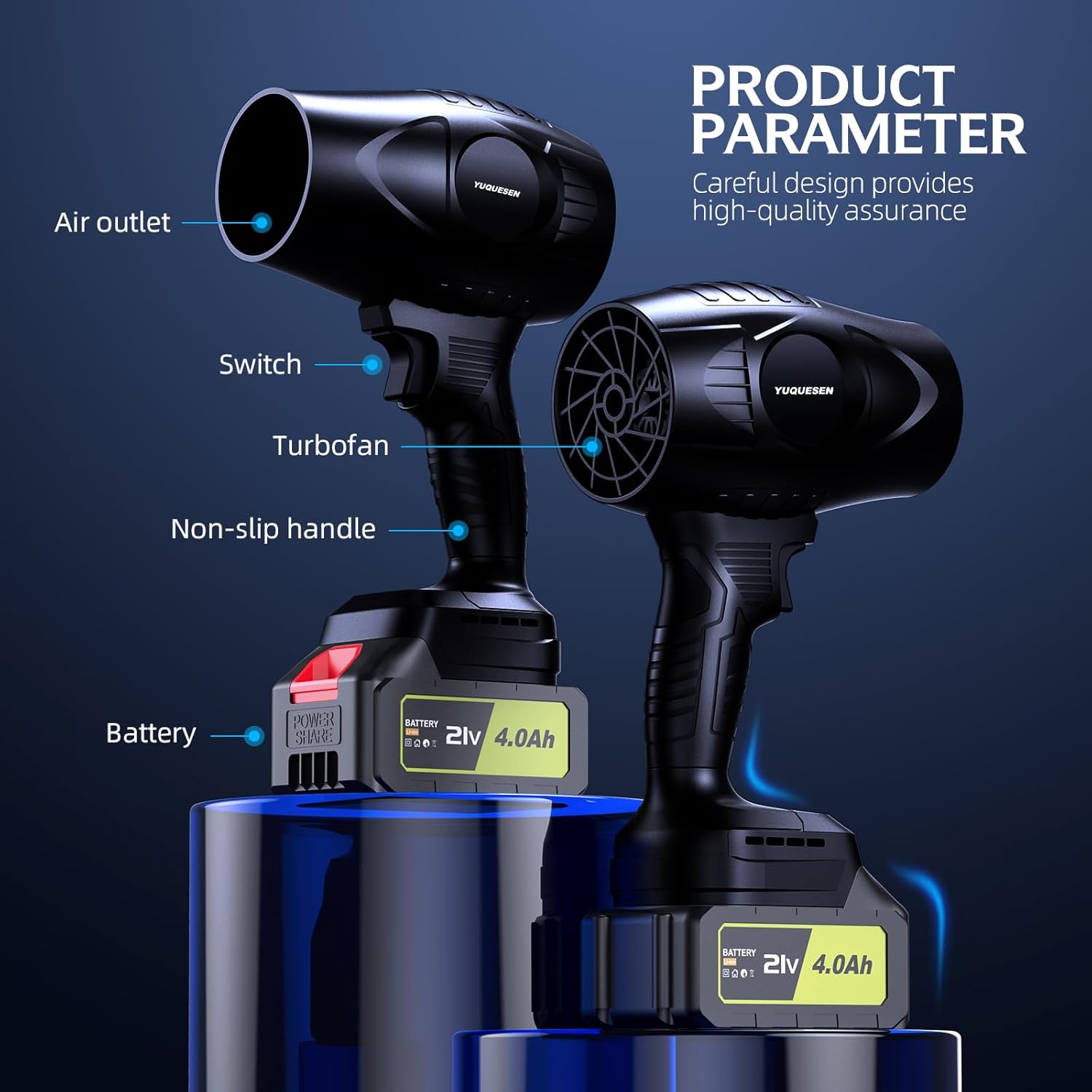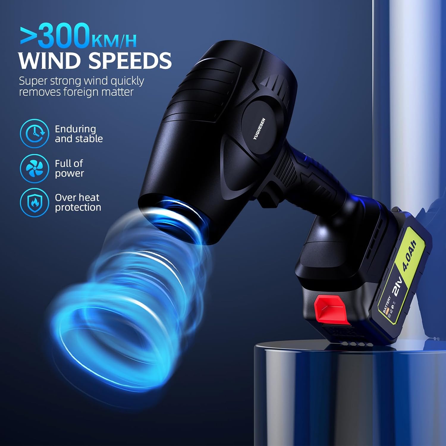 - Leaf blower is designed with a high-speed turbine motor and alloy air blades, with a rotational speed of up to 980,000 RPM, leaf blower cordless generating a high-speed airflow of more than 50 M/S. The electric leaf blower power is long-lasting and stable, so it will not overheat even when working at full load for a long time