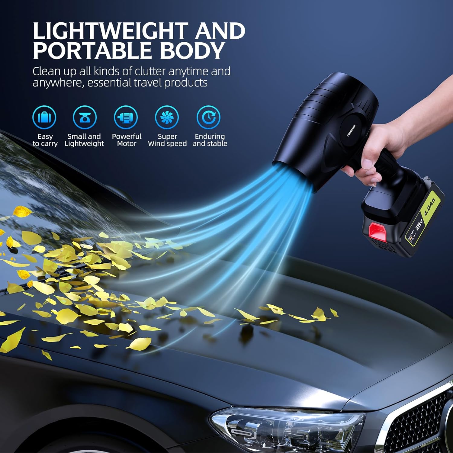 - Cordless leaf blower features a lightweight design that weighs only 1.12 pounds and can be easily lifted with one hand. Battery leaf blower is extremely convenient for both storage and outdoor carry. Blowers for lawn care can be used for big and small details in daily life, leaves, dust, water damage on patio, garden, deck and so on these can be easily removed, blower cordless returning you a clean and comfortable home.
