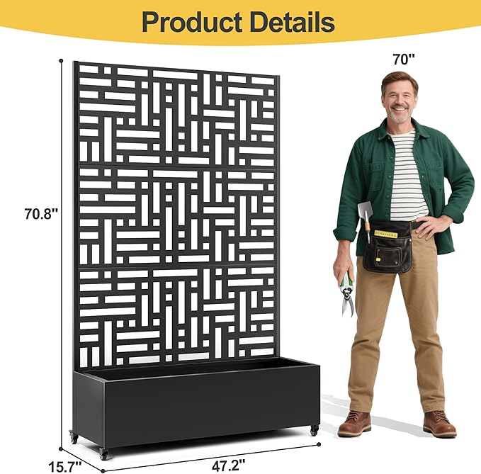 - Suitable for Various Environments This planter with trellis is ideal for gardens, balconies, patios, and greenhouses, perfect for growing flowers, fruits, vegetables, and herbs. It also serves as an privacy planters for patio, creating a tranquil space. Ideal for beautifying your area or enhancing privacy.