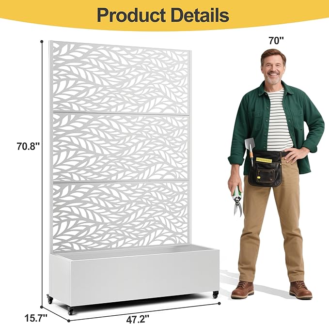 - Suitable for Various Environments This planter with trellis is ideal for gardens, balconies, patios, and greenhouses, perfect for growing flowers, fruits, vegetables, and herbs. It also serves as an privacy planters for patio, creating a tranquil space. Ideal for beautifying your area or enhancing privacy.