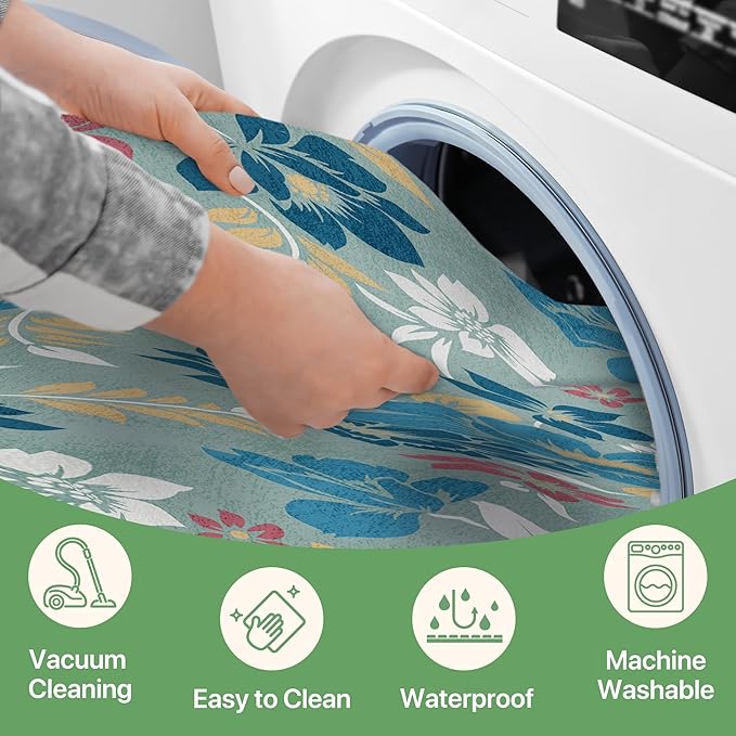 GENIMO Indoor Outdoor Area Rug 6' X 9' Waterproof, Washable Patio Rug Non Shedding, Easy Cleaning Floral Outdoor Carpet for Living Room, Bedroom, Dining Room, Balcony, Backyard, Deck, RV, Blue Grey