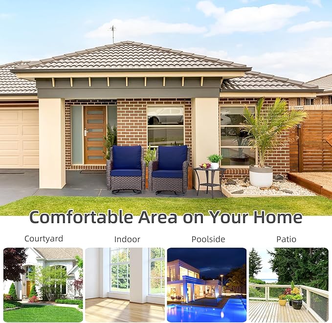 - 360° Swivel and Rocking Function: Outdoor chairs allow you to rotate a full 360 degrees and rock back and forth effortlessly. Whether you want to enjoy a sweeping view or gently sway in the breeze, our swivel rocker patio chair ensures a relaxing experience for both your body and mind