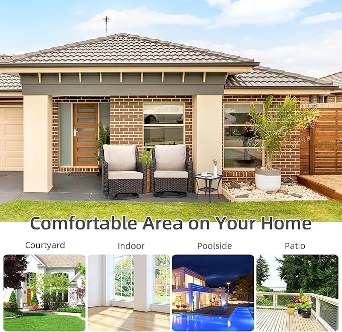 - 360° Swivel and Rocking Function: Outdoor chairs allow you to rotate a full 360 degrees and rock back and forth effortlessly. Whether you want to enjoy a sweeping view or gently sway in the breeze, our swivel rocker patio chair ensures a relaxing experience for both your body and mind