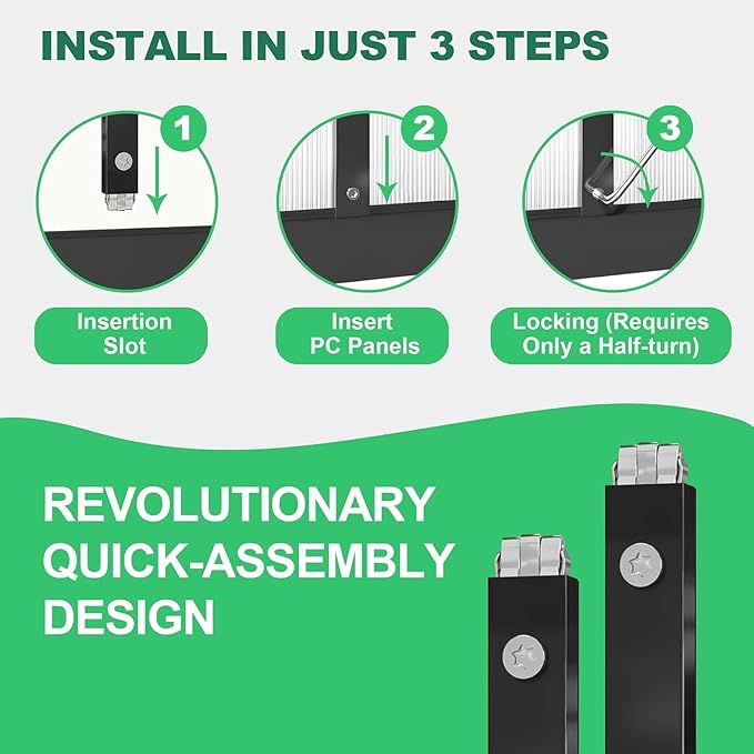 - All Season Versatility and Quick Setup Structure: These greenhouse structures, suitable for backyards, are perfect for growing a wide variety of vegetables, plants, and herbs, offering ample space for gardening activities. It features a simple design with a quick installation system and plug in panels. Having been optimized through more than 500 tests, it increases the installation speed by 40% and enhances the stability by 35%. This greenhouse kit simplifies the assembly process with innovative