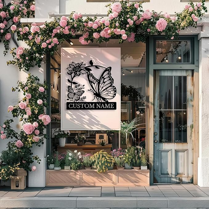 Custom Butterfly Metal Sign,Personalized Butterfly House Number Signs,Personalized Gardener Name Sign,Garden Patio Wall Decor (Style-5)